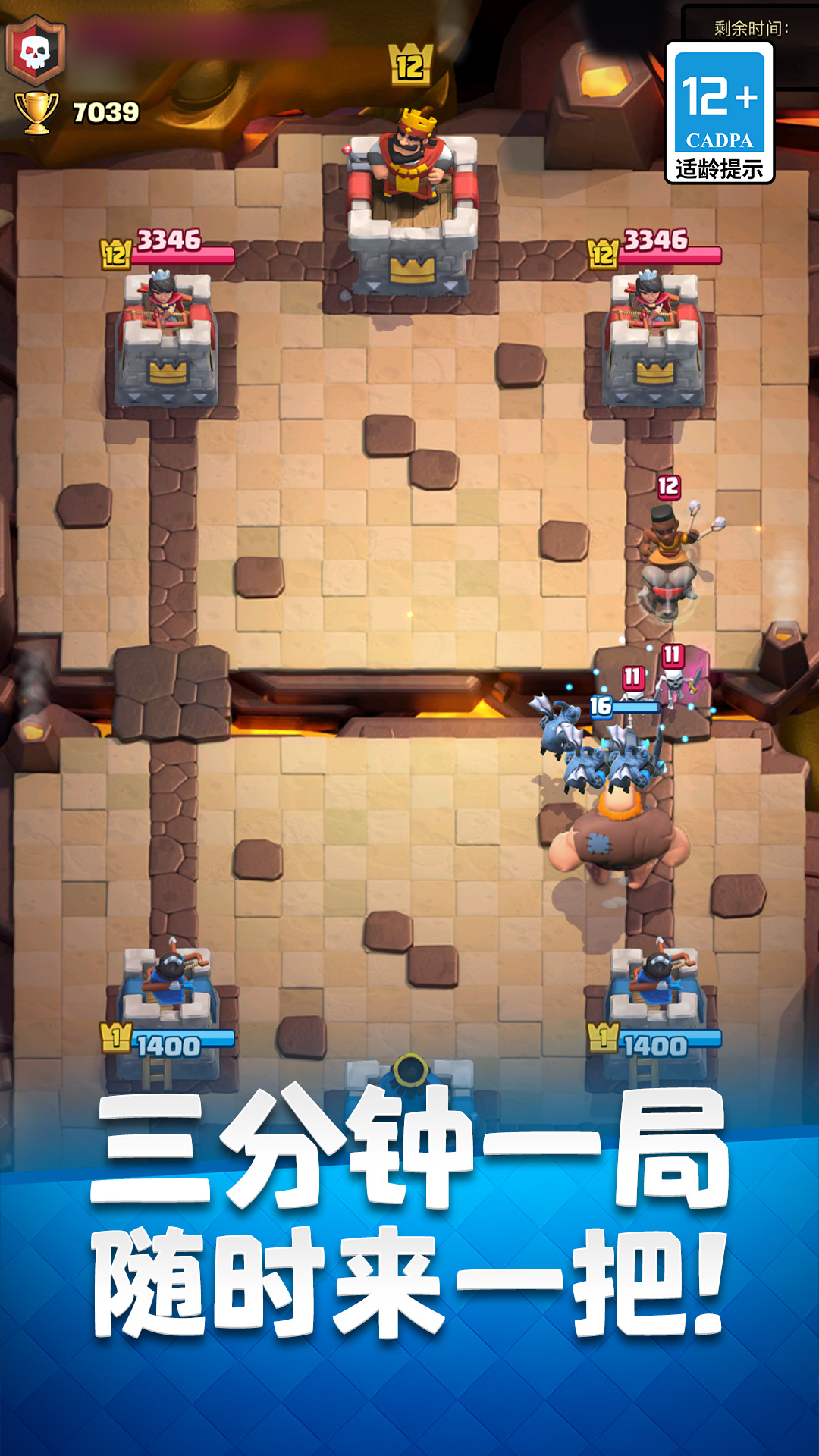 《部落冲突:皇室战争》是由风靡全球的手游《部落冲突》主创成员打造的又一力作。在这里,您可以看到您所钟爱的《部落冲突》中的各色人物以及皇室新成员们。在游戏中,配置多样卡组,玩转深度策略,在竞技场中开启热血对战!精准部署卡牌,摧毁对手的国王塔和公主塔,体验策略致胜的快节奏对决。如果你也喜欢卡牌对战,喜欢快节奏的策略玩法,就赶快加入我们,一起畅享策略竞技盛宴吧!