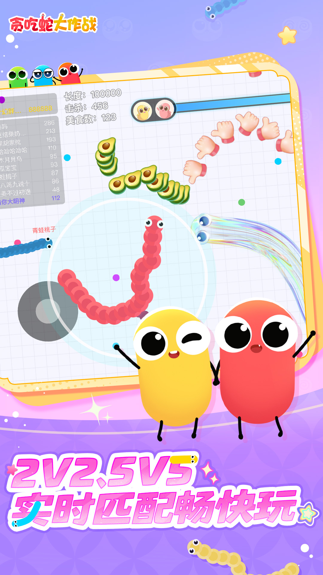 这是一款超好玩的休闲竞技游戏,不仅比拼手速,更考验你的策略!在贪吃蛇大作战的世界中,每个人在初始都化身为一条小蛇,通过不断努力变得越来越长,最终制霸一方!还可组团开黑,超畅快激情团战,随时三杀暴走超神!