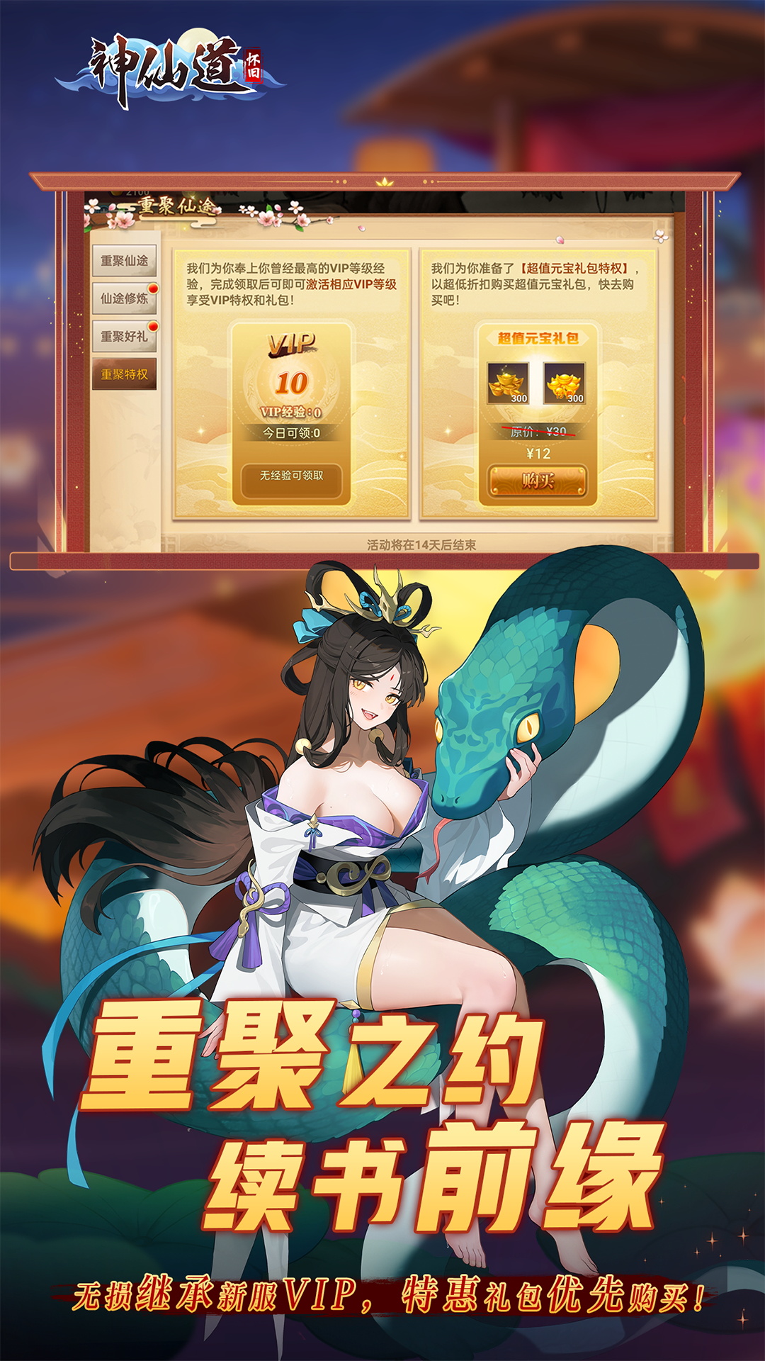 《神仙道》经典大作在运营10年期间内创下了众多辉煌成绩,注册玩家突破4亿!!《神仙道》原班人马倾情奉献,带你体验统治仙界的不朽传奇!!!