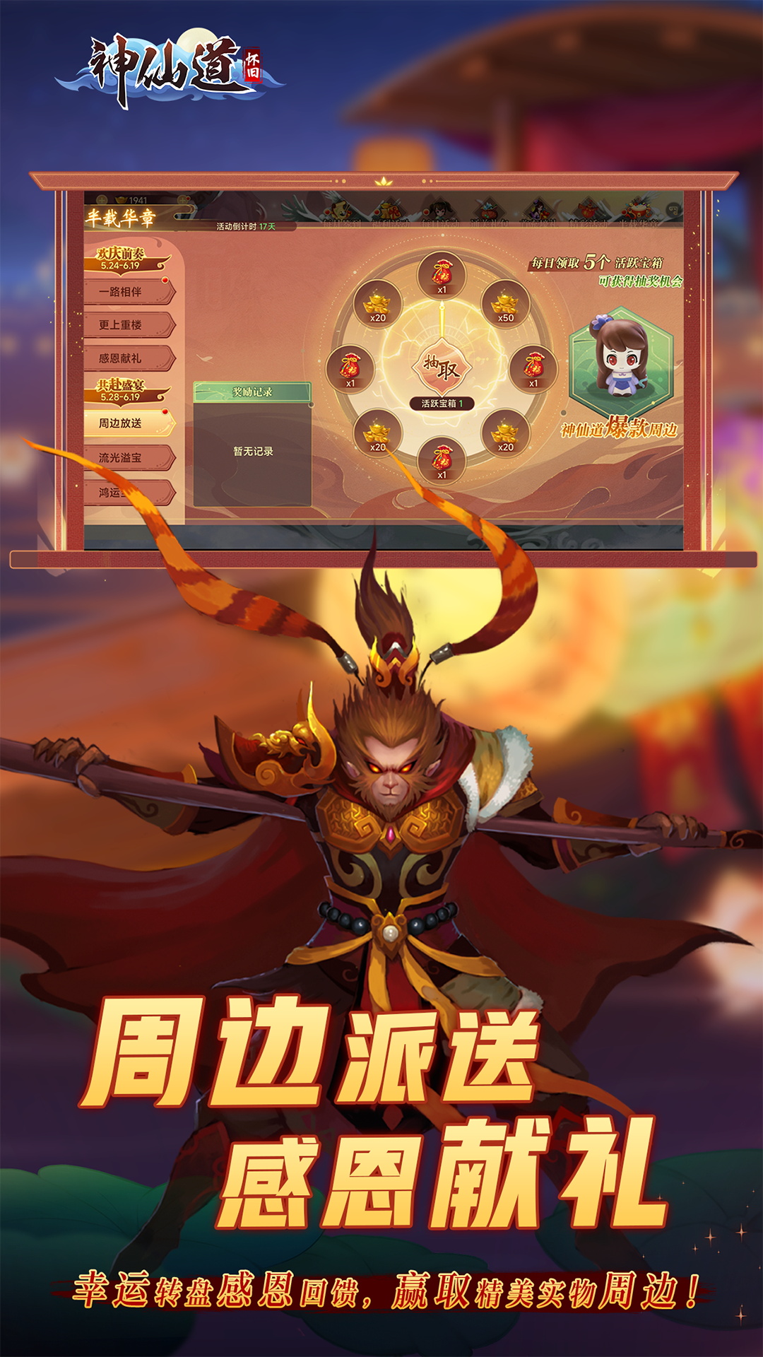 为庆祝半周年,登录即送海量元宝,天降红包雨让你惊喜连连,更有幸运转盘赢取精美实物周边。